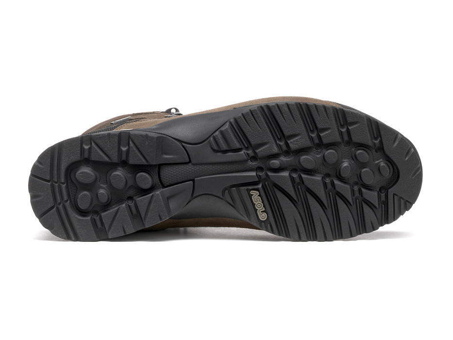 - Podešev: Asolo Syncro s bi-densitní gumou a vzorkem Asobrake