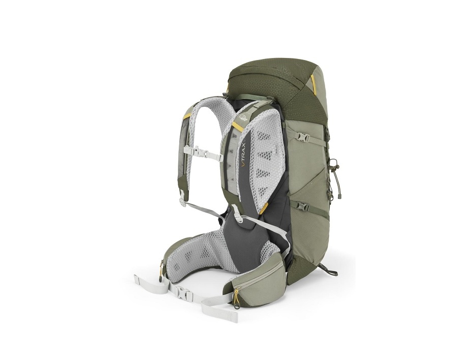 V-TRAX™ je nosný systém s nastavitelnou délkou zádového panelu pomocí suchého zipu. Společně s podpůrným bederním pásem zajišťuje plný kontakt se zády a vynikající stabilitu.