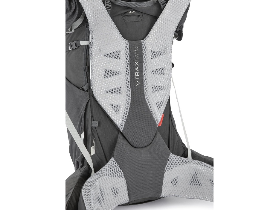 V-TRAX™ je nosný systém s nastavitelnou délkou zádového panelu pomocí suchého zipu. Společně s podpůrným bederním pásem zajišťuje plný kontakt se zády a vynikající stabilitu.
