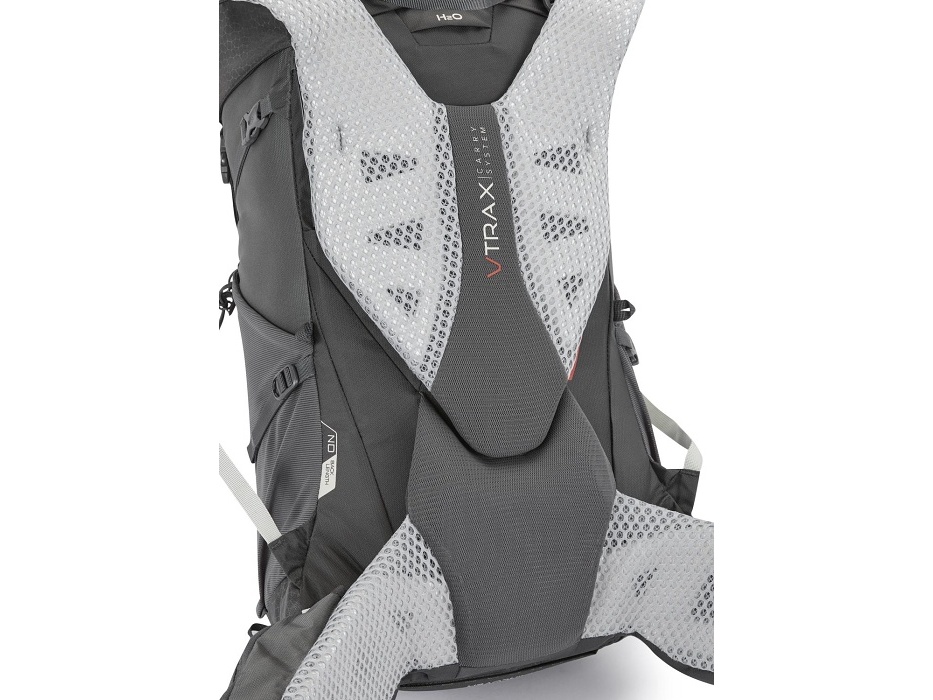 V-TRAX™ je nosný systém s nastavitelnou délkou zádového panelu pomocí suchého zipu. Společně s podpůrným bederním pásem zajišťuje plný kontakt se zády a vynikající stabilitu.