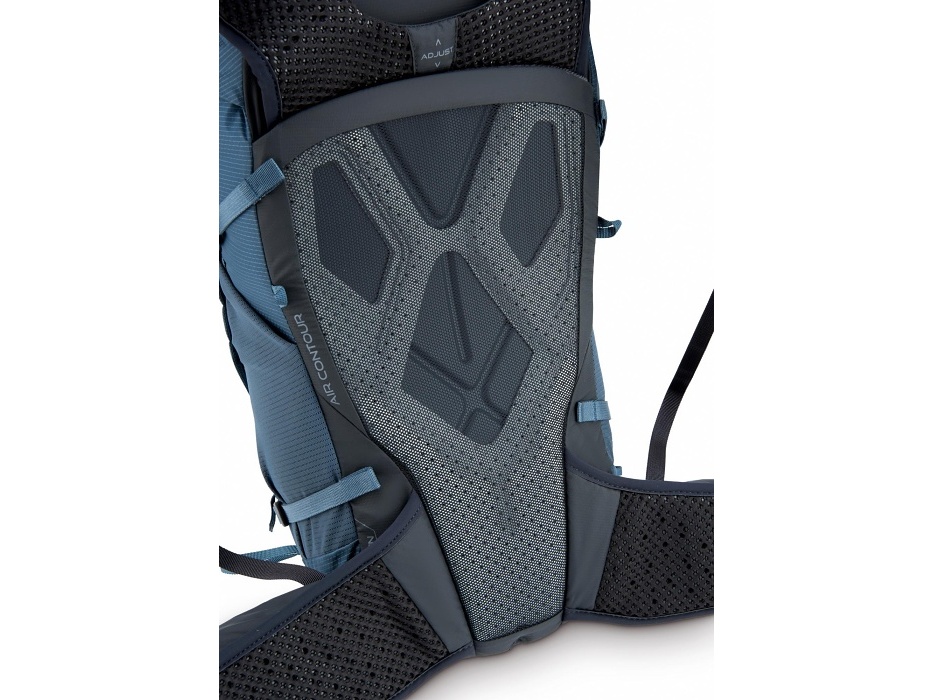 • Zádový systém: nastavitelný a tvarovaný Air Contour™ s lisovaným ABS panelem